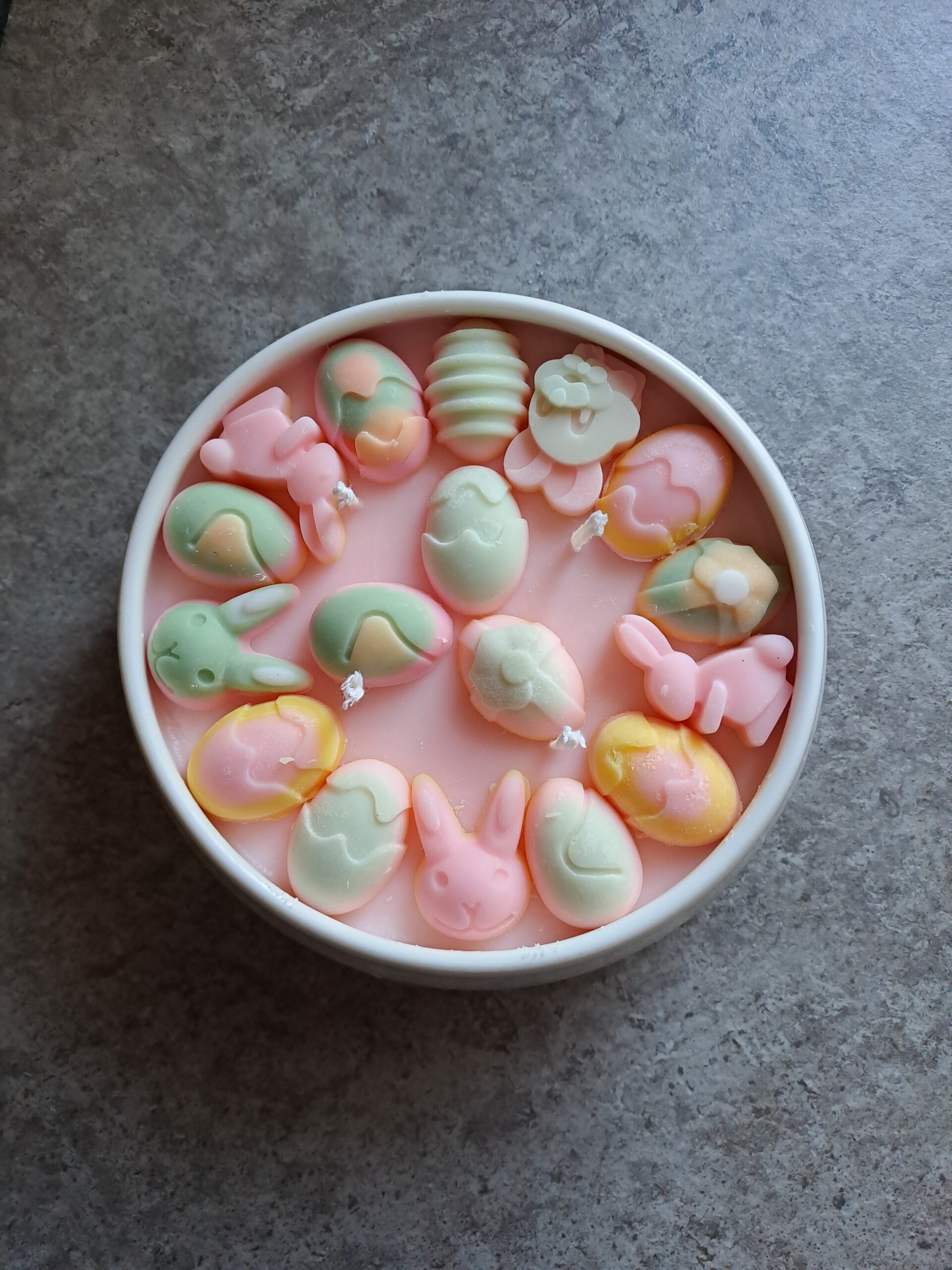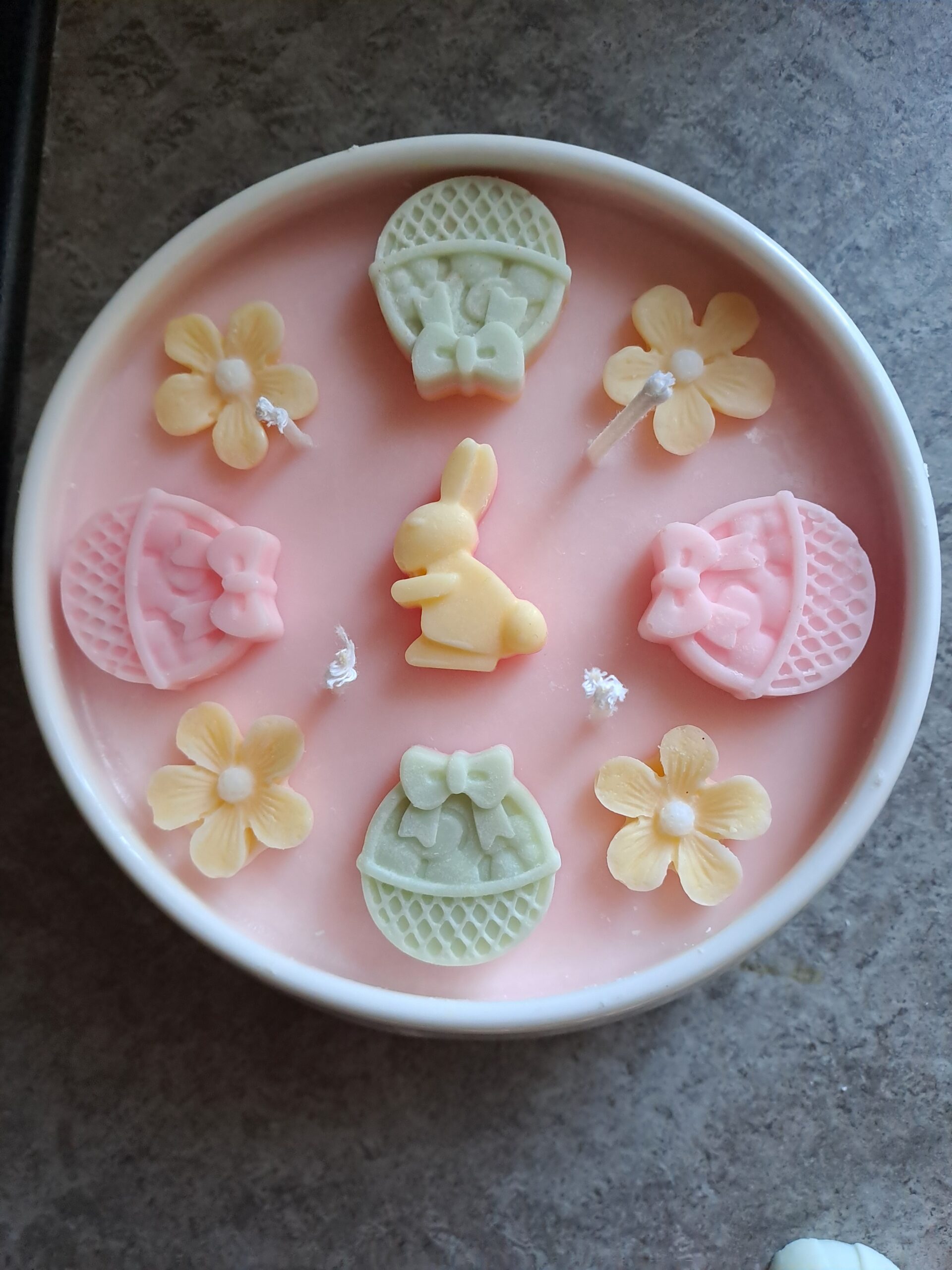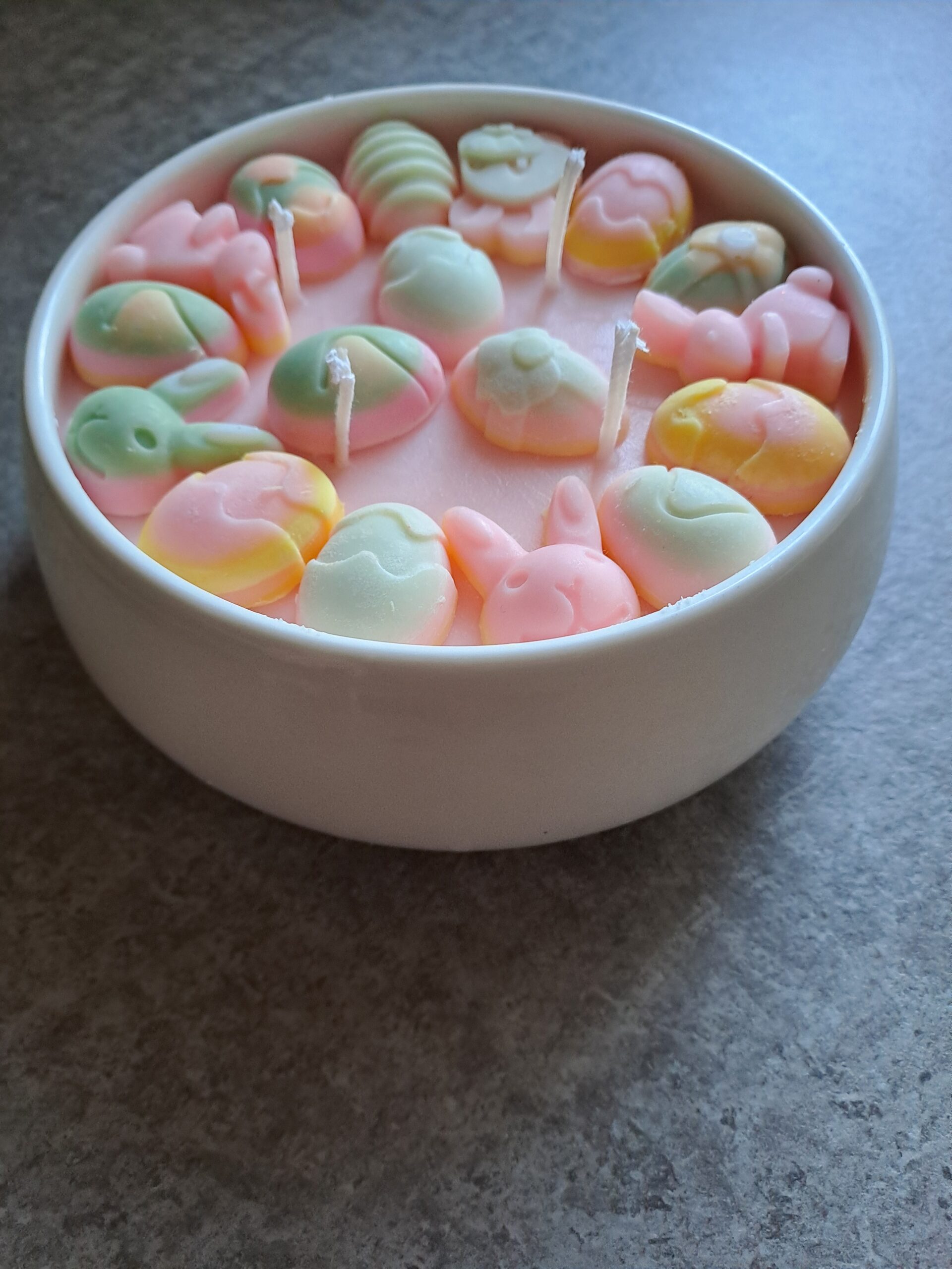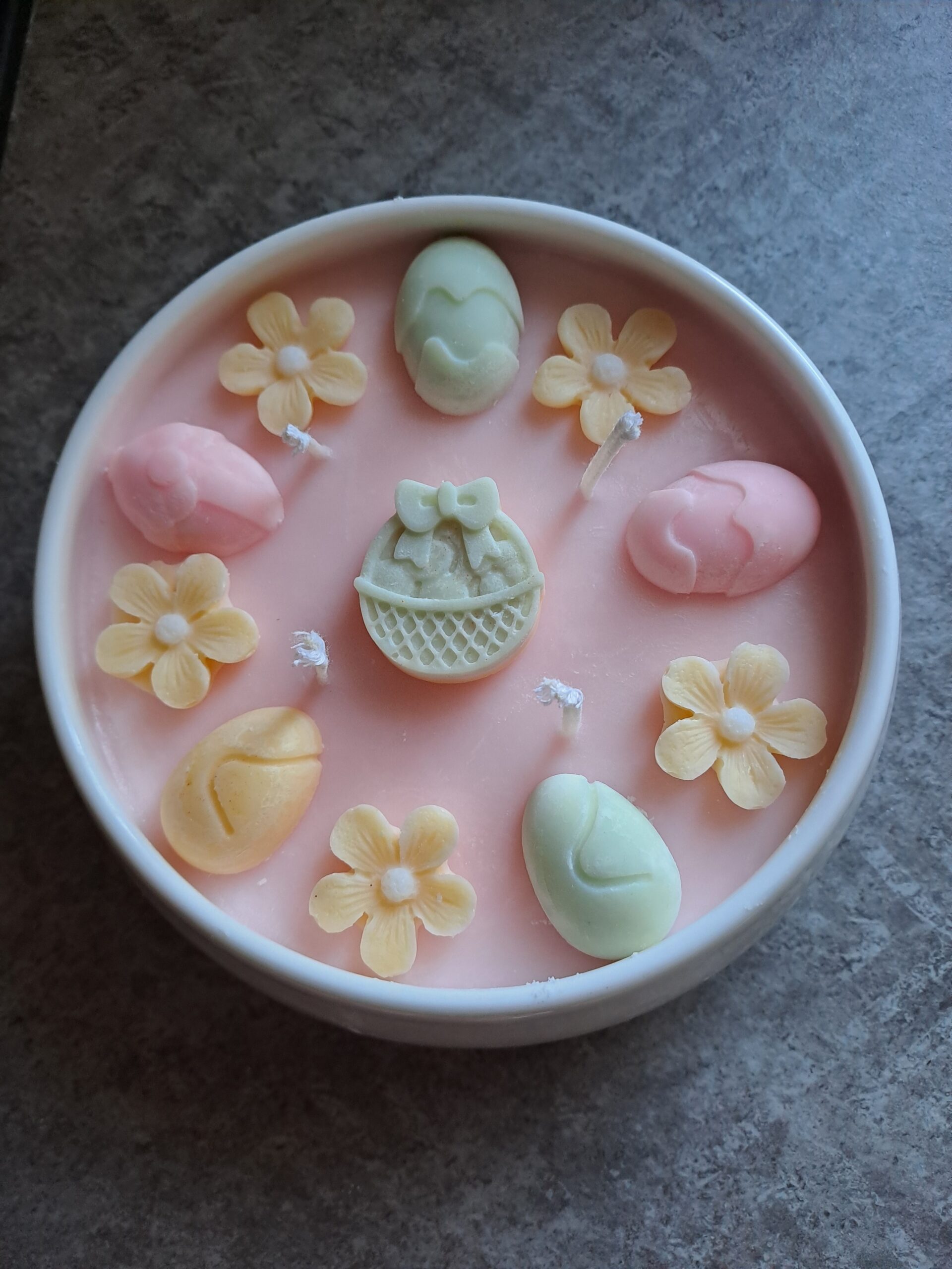 Osterdekokerze in weißer Schale